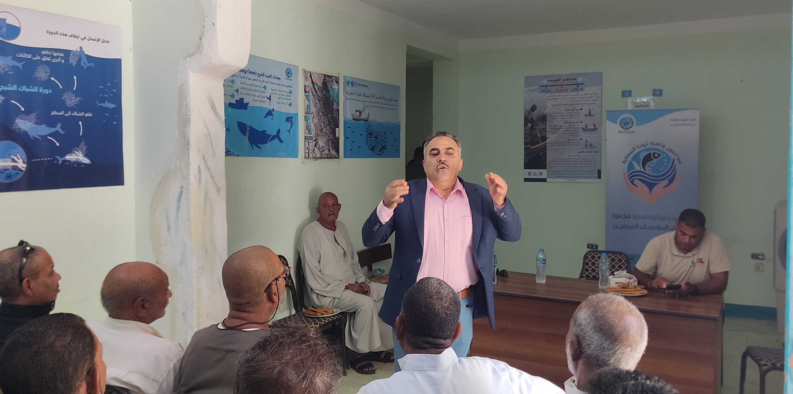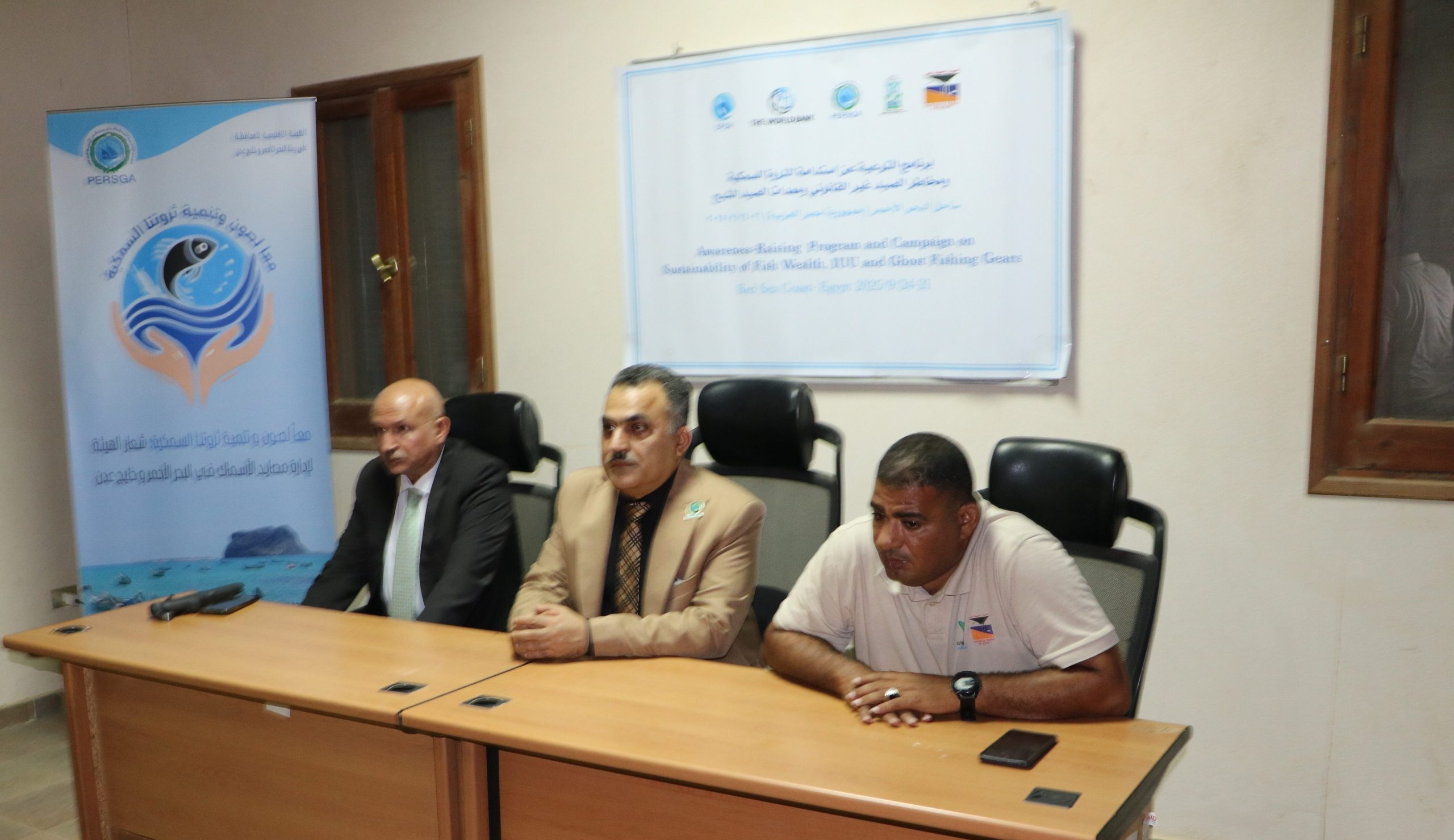 PERSGA held this program in coordination with the national focal point Egyptian Environmental Affairs (EEPA)) along & Red Sea Area Sector (RSPAS) in Egypt for four days (21-24 September 2025) at three coastal areas along the Red Sea Coast of Egypt. These areas were Abu Ghosson (Marsa Al Alam), Quiser and Hughradah. PERSGA had a meeting with fishers in each area. The main purpose of this event was to raise the awareness level of fishers on Sustainability of Fish Wealth and to have an open discussion with fishers for the development of fishery management along the Egyptian Red Sea coast. The main activities of the program were meetings, though a visit to a local fish market was a part of these activities. Three one-day meetings were held in the coastal area ( 21-23 September 2025. About 45 persons (some of them were chairs of fishery societies) participated at these meetings that included different presentations in relation to Ghost Fishing Gears (GFGs), Illegal, Unreported and Unregulated (IUU) and fisher Legislations & endangered species in the Red Sea coast of Egypt. There were also discussion sessions for the local fishers at each meeting. On the fourth day (24 September 2025), a visit to the Hurghada fish market was made to have dialogues with fishers regarding some of these issues. These activities were undertaken to meet the aim of the program.